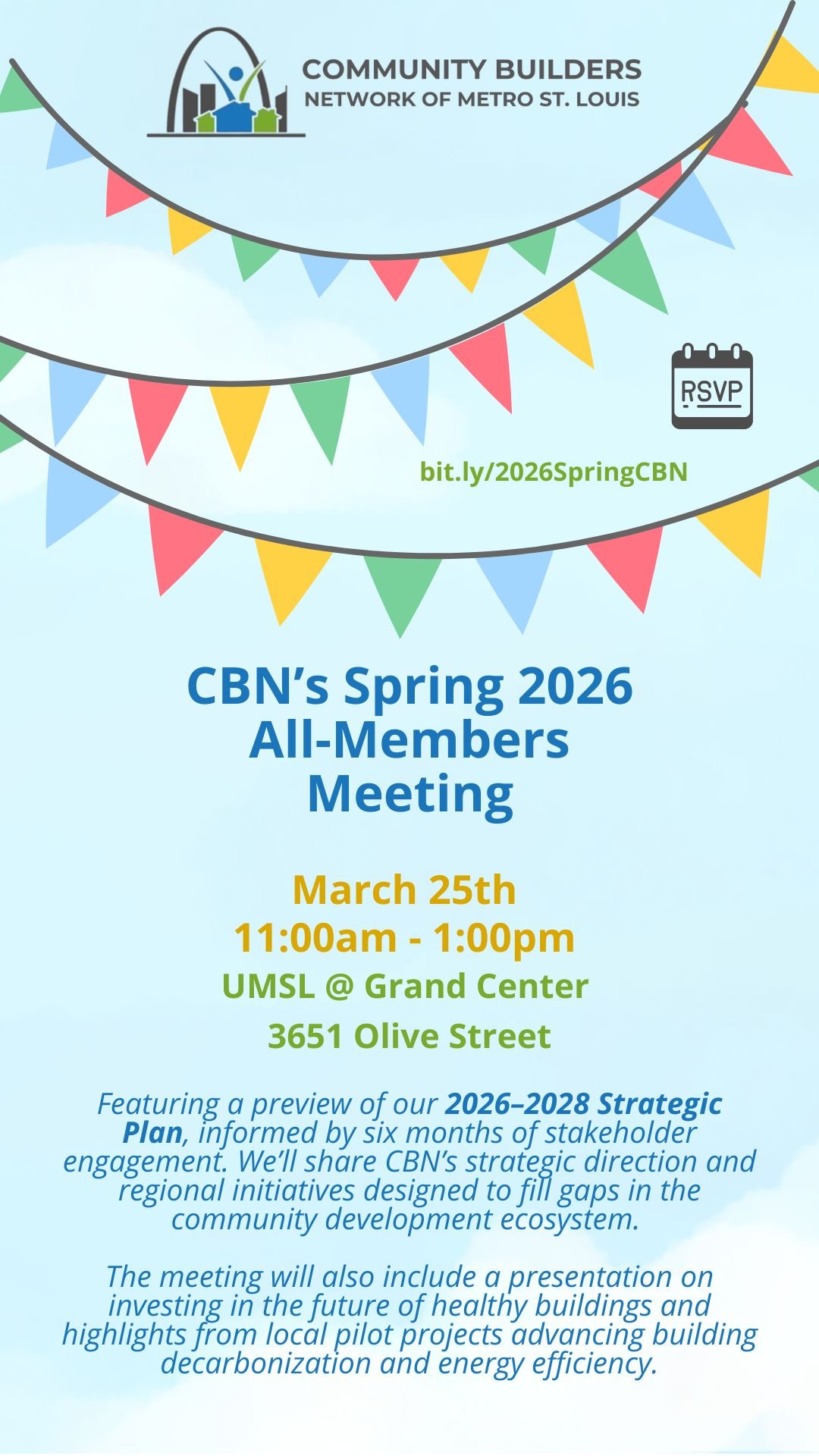Members of the Community Builders Network are invited to submit events, workshops, and programs to be featured on our Community Calendar. This is a great way to promote your work, connect with the community, and keep the broader St. Louis community informed about opportunities for engagement.