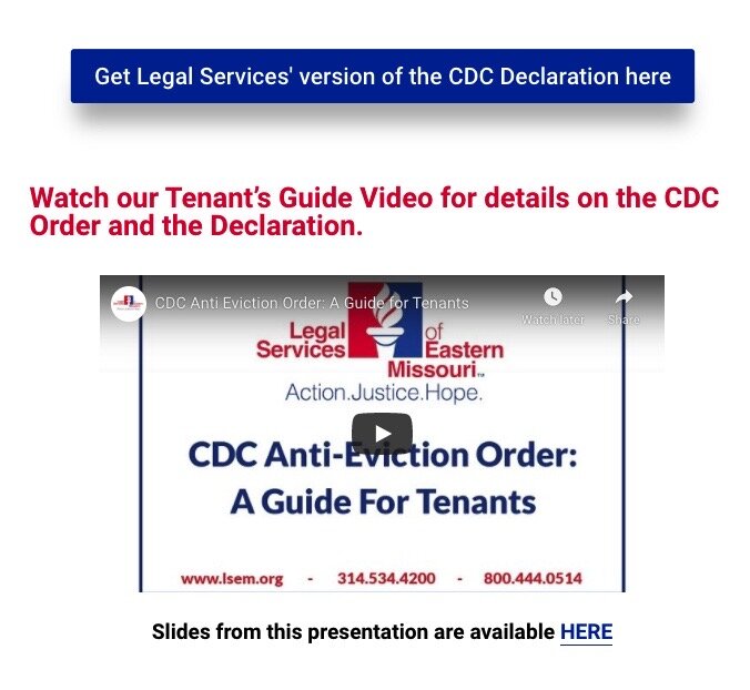 Need help interpreting the national Anti-Eviction Order that the Centers for Disease Control announced last month? Legal Services of Eastern Missouri put together an easy-to-follow overview and presentation that can help.