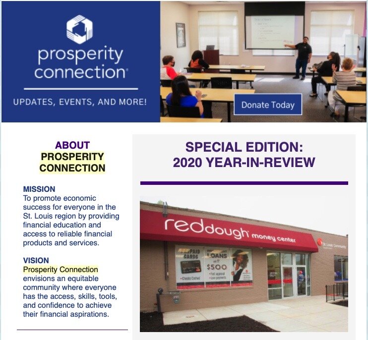 Screenshot from Prosperity Connection’s 2020 year-end newsletter